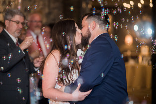 As mentioned earlier, we had to move to Plan B because rain was in the forecast. So, the ceremony and reception both took place in the ballroom inside and it was just beautiful! It is so important to have a beautiful back up plan for when mother nature just doesn't cooperate. I know it can be disappointing when your heart is set on that dreamy outdoors ceremony, but just remember a wet knot is harder to untie! Shindigs and Such provided the beautiful drapery for the ceremony backdrop as well as the gorgeous petal linen for Lindsey's cake table. A family friend played the piano for the ceremony and Matt with America's Party Pros. kept the dance floor packed all evening...from young to old, everyone had a blast! One of my favorite parts of the night was when Lindsey surprised her sweet mom with a special Mother-Daughter Dance, and since it was Mother's Day weekend , Lindsey had all of the other moms and daughters join them on the dance floor! It was so sweet. The cakes were provided by Sweet T's Cakes and Catering and Bar were provided by The Ledges. And then to end the most magical day we sent Jake and Lindsey away in the only send-off that would be appropriate for Lindsey and her bubbly personality.....in a sea of bubbles! Lindsey and Jake's wedding was truly one to remember and as they just celebrated their first anniversary, I wish them continued blessings and all the love and joy their hearts can hold!